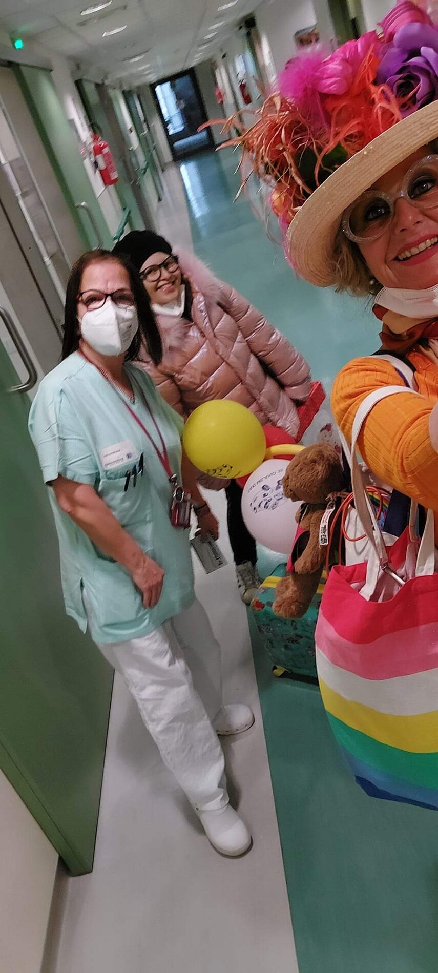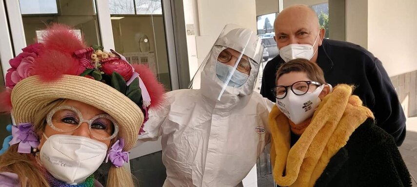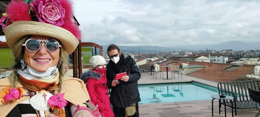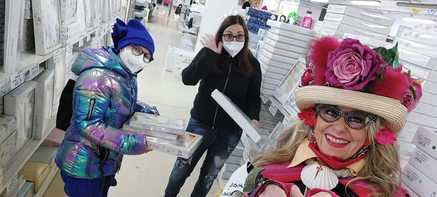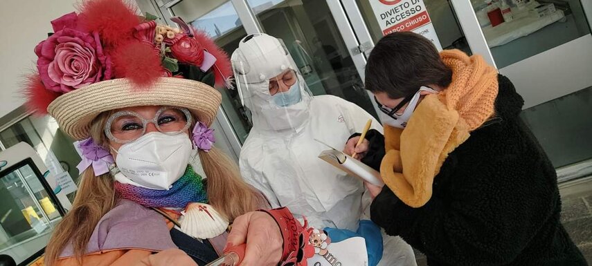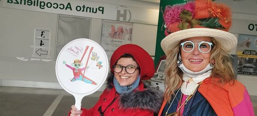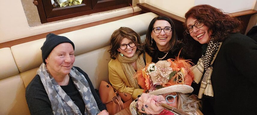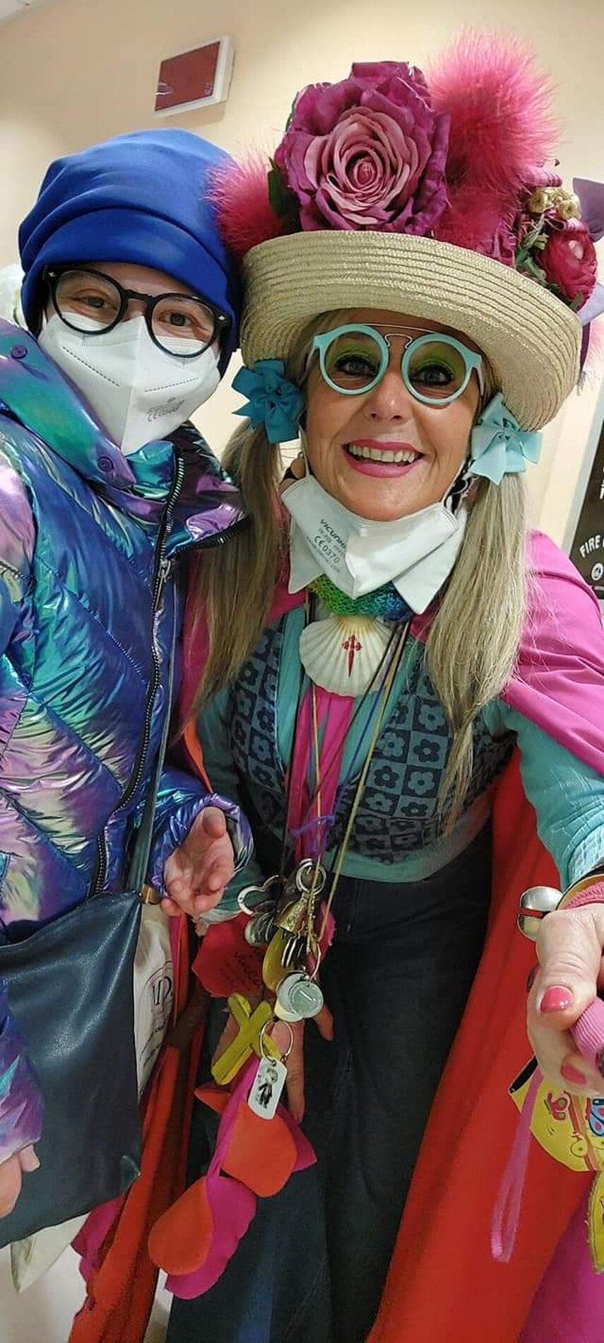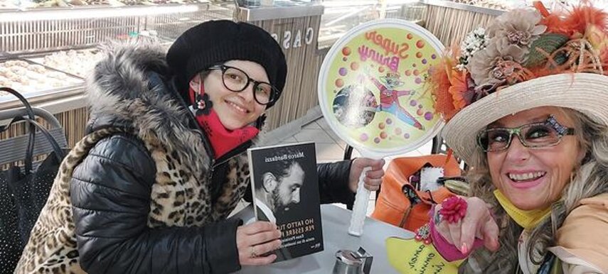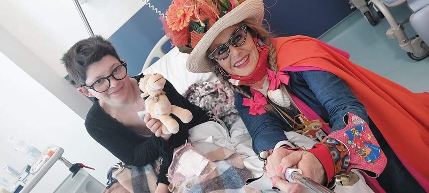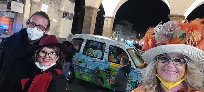 Ho sempre visto la macchina della zia ovunque per Firenze ma non mi ero mai soffermata abbastanza su quello che faceva, né mi ero mai presentata. L'aver cura dell'altro però ha sempre fatto parte di me. Ho fatto cose diverse della zia ma il concetto rimane quello di prendersi cura dell'altro più fragile di te. Quando ho fatto gli scout sono andata insieme al Clan in Albania a giocare con i bambini fragili, a farli godere di alcuni momenti di felicità. Quando ho fatto le due tesi sulla dispersione scolastica sono andata a Scampia a prendere i bambini delle vele e li ho portati insieme ai collaboratori del centro Hurtado a giocare e ad apprendere. Perché è quella la vita che un bambino deve fare. Il bambino è stato sempre il mio centro, il centro dei miei studi. Sono diventata insegnante di sostegno per insegnare e rendermi utile ai più fragili per far capire a tutti che ognuno ha delle potenzialità e non esiste la normalità. Questo per dire che io e zia Caterina eravamo destinate ad incontrarci perché in un certo senso abbiamo la stessa forma mentis. Il vero incontro con zia Caterina è stato ad ottobre 2021 in oncologia. Io stavo aspettando di fare la chemio e seduta in sala d'attesa mi trovo questa maga tutta colorata. È il colore che mi ha attirata più di tutto e il travestimento perché io fino al giorno prima coloravo con i miei bambini a scuola dell'infanzia e il mio posto è lì e voglio tornarci con tutta me stessa perché so che posso ancora dare tanto con il cuore e con la mia professionalità. Zia Caterina intavolò una conversazione: mi chiese con aria seria come avrei fatto io a far capire alle persone che mi circondano ciò che io sto passando. Difficile come domanda perché da quando mi sono ammalata molti amici e parenti sono diventati conoscenti e li ho persi per strada, sono stata delusa e ho capito che era davvero complicato far capire loro cosa stavo provando momento dopo momento, cosa significasse fare una chemio, cosa significasse avere un tumore. Solo la parola spaventa. Da quel momento non ho più lasciato zia Caterina, ho capito che lei doveva entrare nella mia vita perché eravamo fatte della stessa pasta e io per ciò che potevo volevo contribuire ai suoi progetti. Lei mi chiama la *sua bambina* non mi ha partorito lei ma avrebbe potuto sicuramente farlo. Le sono piaciuta e lei è piaciuta a me e tra poco andremo insieme a Napoli. È una donna straordinaria, un vulcano di emozioni e sprigiona colore da tutti i pori, io l'adoro.