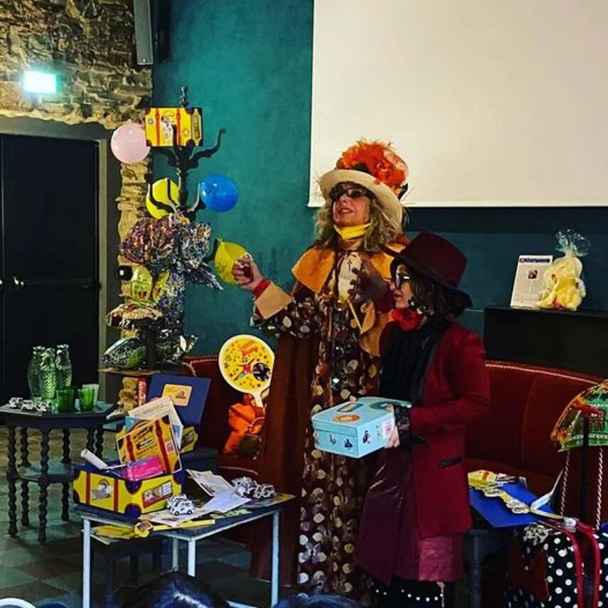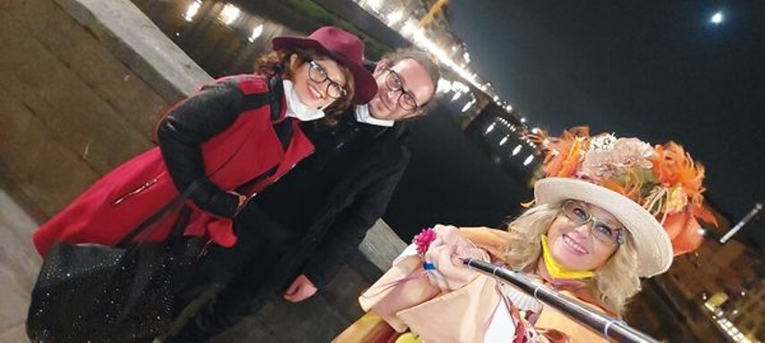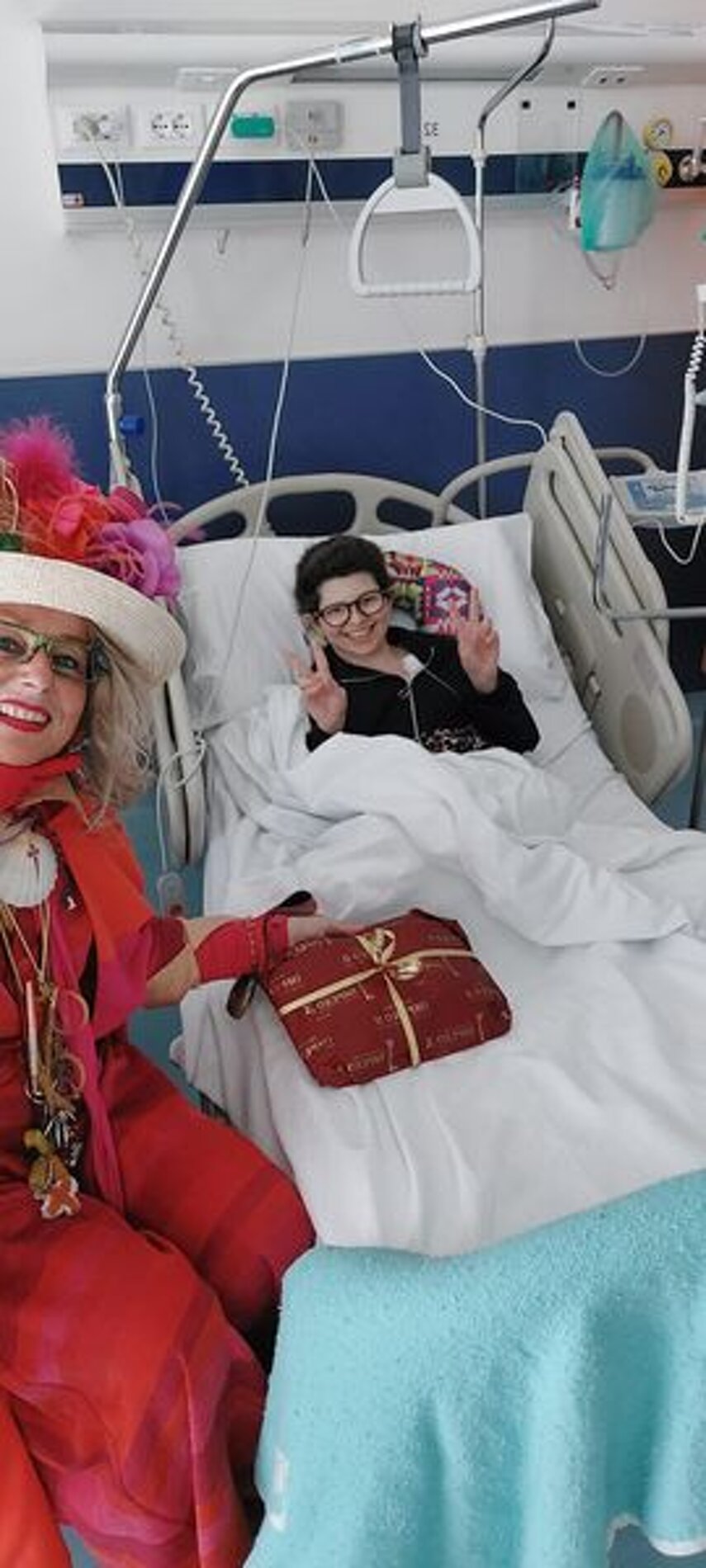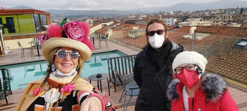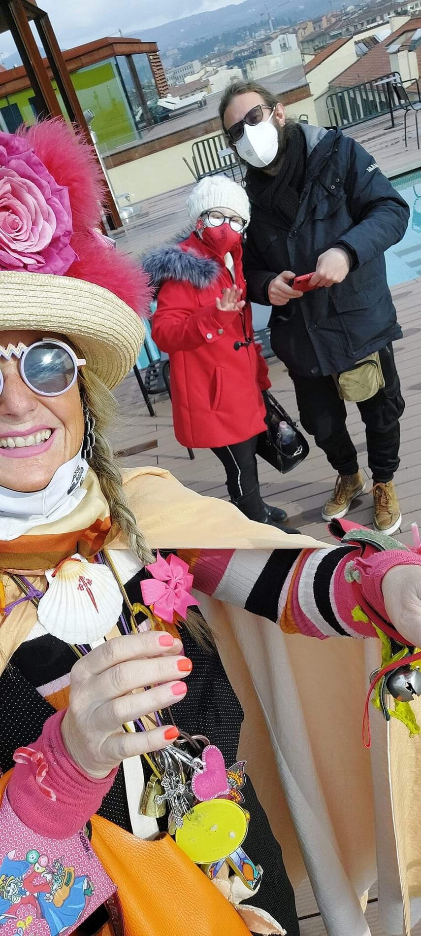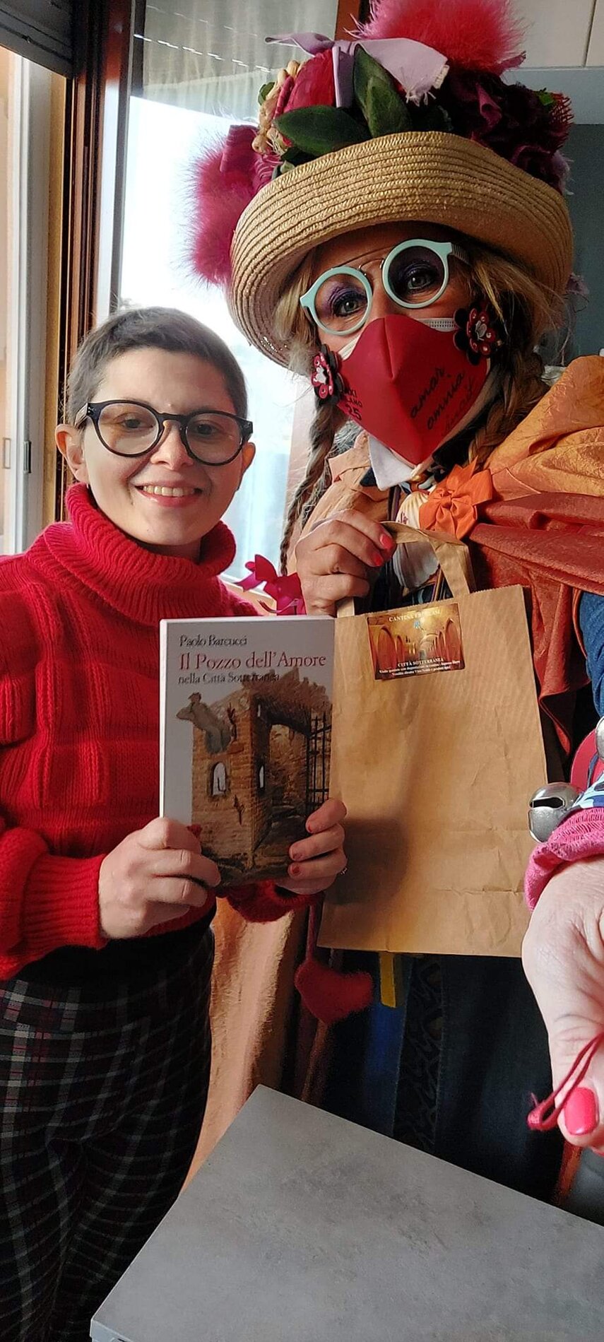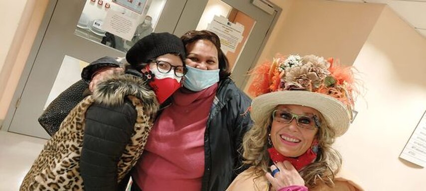 Ho sempre visto la macchina della zia ovunque per Firenze ma non mi ero mai soffermata abbastanza su quello che faceva, né mi ero mai presentata. L'aver cura dell'altro però ha sempre fatto parte di me. Ho fatto cose diverse della zia ma il concetto rimane quello di prendersi cura dell'altro più fragile di te. Quando ho fatto gli scout sono andata insieme al Clan in Albania a giocare con i bambini fragili, a farli godere di alcuni momenti di felicità. Quando ho fatto le due tesi sulla dispersione scolastica sono andata a Scampia a prendere i bambini delle vele e li ho portati insieme ai collaboratori del centro Hurtado a giocare e ad apprendere. Perché è quella la vita che un bambino deve fare. Il bambino è stato sempre il mio centro, il centro dei miei studi. Sono diventata insegnante di sostegno per insegnare e rendermi utile ai più fragili per far capire a tutti che ognuno ha delle potenzialità e non esiste la normalità. Questo per dire che io e zia Caterina eravamo destinate ad incontrarci perché in un certo senso abbiamo la stessa forma mentis. Il vero incontro con zia Caterina è stato ad ottobre 2021 in oncologia. Io stavo aspettando di fare la chemio e seduta in sala d'attesa mi trovo questa maga tutta colorata. È il colore che mi ha attirata più di tutto e il travestimento perché io fino al giorno prima coloravo con i miei bambini a scuola dell'infanzia e il mio posto è lì e voglio tornarci con tutta me stessa perché so che posso ancora dare tanto con il cuore e con la mia professionalità. Zia Caterina intavolò una conversazione: mi chiese con aria seria come avrei fatto io a far capire alle persone che mi circondano ciò che io sto passando. Difficile come domanda perché da quando mi sono ammalata molti amici e parenti sono diventati conoscenti e li ho persi per strada, sono stata delusa e ho capito che era davvero complicato far capire loro cosa stavo provando momento dopo momento, cosa significasse fare una chemio, cosa significasse avere un tumore. Solo la parola spaventa. Da quel momento non ho più lasciato zia Caterina, ho capito che lei doveva entrare nella mia vita perché eravamo fatte della stessa pasta e io per ciò che potevo volevo contribuire ai suoi progetti. Lei mi chiama la *sua bambina* non mi ha partorito lei ma avrebbe potuto sicuramente farlo. Le sono piaciuta e lei è piaciuta a me e tra poco andremo insieme a Napoli. È una donna straordinaria, un vulcano di emozioni e sprigiona colore da tutti i pori, io l'adoro.