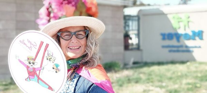 Io le dicevo che baby Yoda era bruttino ma lei vedeva la bellezza anche dove noi persone comuni non riusciamo a vederla. Il mio personaggio nasce così, da una situazione complicata, complessa, dolorosa e triste, abbiamo trovato il bello e riso e scherzato capovolgendo la situazione, guardandola da una prospettiva completamente nuova. Questo baby Yoda però doveva essere arricchito con accessori che rappresentassero davvero la mia personalità e quindi abbiamo aggiunto gli occhiali, la bocca bella sorridente perché ho un bel sorriso, zia dice che sono l'angelo del sorriso e cerco di sorridere sempre anche nelle difficoltà. Ma questo non bastava, io volevo essere rappresentata mentre danzavo nel cielo con i miei tessuti di un bel rosso fuoco come piace a me, tutti dovevano capire che attraverso la danza aerea io mi sento libera a tutti gli effetti. Libera dai problemi, libera di sfidare i miei limiti, di fare le capriole come solo i bambini sanno fare. Ovviamente al mio personaggio abbiamo aggiunto un particolare che non poteva mancare: in questo anno sono diventata mamma e quindi il piccolino che porto con me come un canguro è il mio Diego Samuel, ma lo si comprende anche dal palloncino a forma di carrozzina che vola insieme a me. Perché come dice la zia, insieme saremo infinito e l'amore vince su tutto anche sulla malattia che mi ha colpita e che insieme sconfiggeremo.