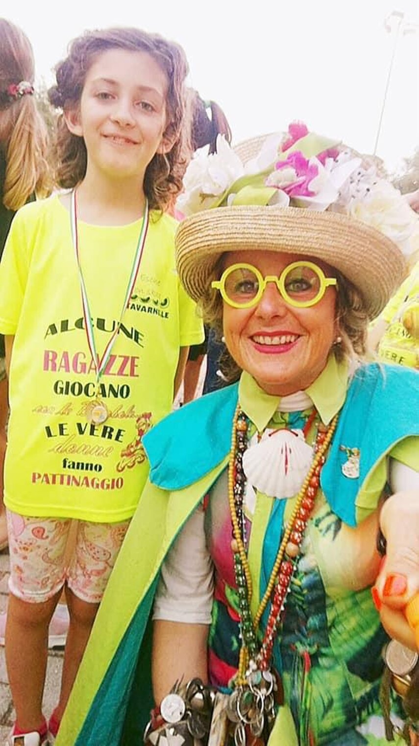 Ho conosciuto la zia perché un giorno mia mamma l’ha invitata ad una cena di beneficienza per il Meyer, così è arrivata con il suo meraviglioso taxi colorato nella piazza di Tavarnelle con a bordo Krissega che al tempo era ancora “piccolina”